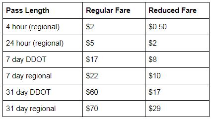 A chart showing new proposed fares for DDOT