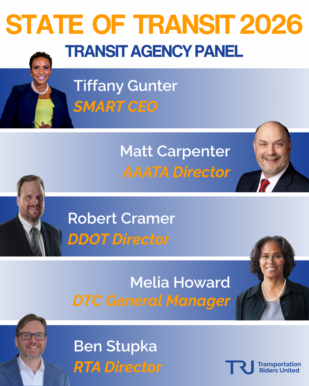 Who: Transit agency leaders public officials, TRU board members, bus riders, and others