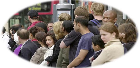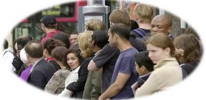 crowd waiting for bus – small